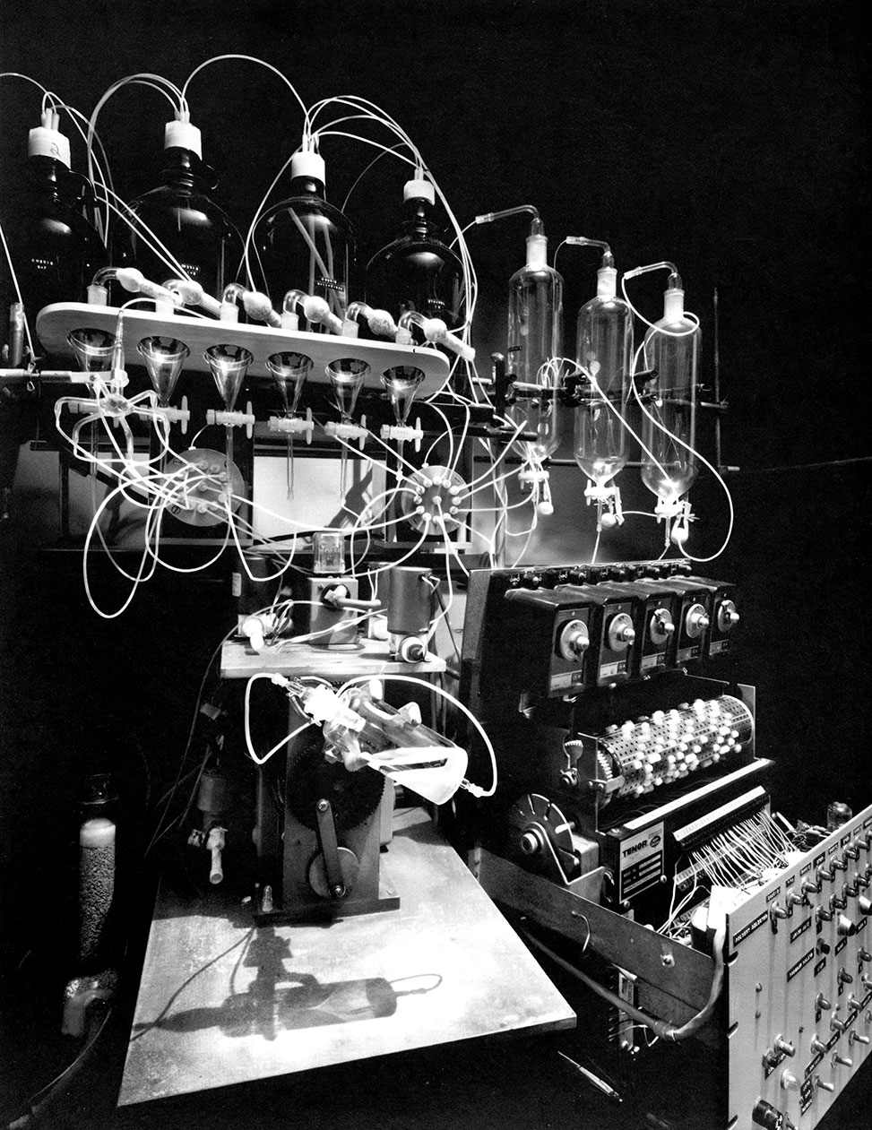 The authors are indebted to Fernando Albericio, David Andreu, Michael J. Barany, Nagarajan "Mouli" Chandramouli, Charles M. Deber, Richard D. DiMarchi, Cathy Merrifield Edwards, Art Felix, Jed F. Fisher, Gregg B. Fields, Dee Graefe, Betsy Merrifield Grindstaff, Robert P. Hammer, Noreen J. Hickok, David Live, Maurice Manning, Alexander R. Mitchell, Laurie Merrifield Nelson, Cecille Unson O'Brien, Jim Pfeiffer, Jeffrey I. Seeman, James P. Tam, Dan Veber, John D. Wade, and Nancy Merrifield Waugh for their help and encouragement at the time that this essay was prepared, and that the associated materials for the web were compiled and annotated. We also appreciate the efforts of Noah and Arthur Robinson to reconstruct the original synthesizer and organize "the notebook" for the CHF/SHI science museum, and furthermore to reproduce "the notebook" in a hard-bound volume that was distributed in March 2013 at the inaugural Bruce Merrifield Distinguished Lecture at The Rockefeller University. Finally, we are grateful to Patrick Shea and Roger Turner of CHF/SHI, Bethany J. Antos, Bob Clark, Susan E. McDade, and Margaret "Meg" Hogan Snyder from the Rockefeller Archive Center, James Carrozza, Jeff Hennefeld, Frank Hoke, Marnie Imhoff, Sandra Levy, and Teresa L. Solomon from The Rockefeller University, Justin R. Kellin, Christie L. Martin, Eric Shulz, and Chuck Tomlinson from the University of Minnesota; and Lauren Cline, Lars Sahl, and Joel P. Schneider from the American Peptide Society, all for their continued help in preserving the legacy of Bruce Merrifield.